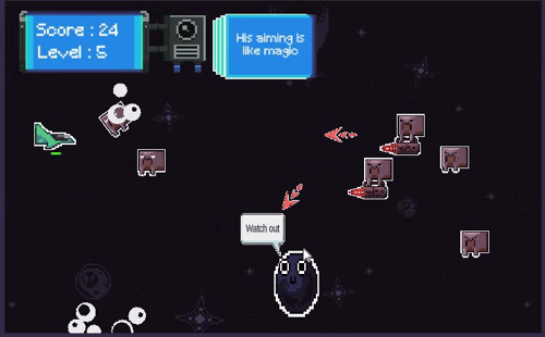 First, the ship's bullet changes direction every run, currently three modes : straight, falling, rising. In the first try, you will always encounter straight, then fall, then rise. That's 3 attempts already, way beyond a normalJjam game lifetime. Initially, I hope to introduce player to a more standard mode : straight, and then let them try out the falling ones, finally making the big twist in rising ones. Feed players one step of difficulty at a time. Turns out not much have noticed that, at least not yet reported so far. A way to solve the issue is to make it level based, so that players are exposed to them without proactive efforts. I could do that, but the enemy spawning were by a rising algorithm. There's a mental block that I treat it as an arcade or roguelike-ish type game. It's a situation that my heart beats my mind.
